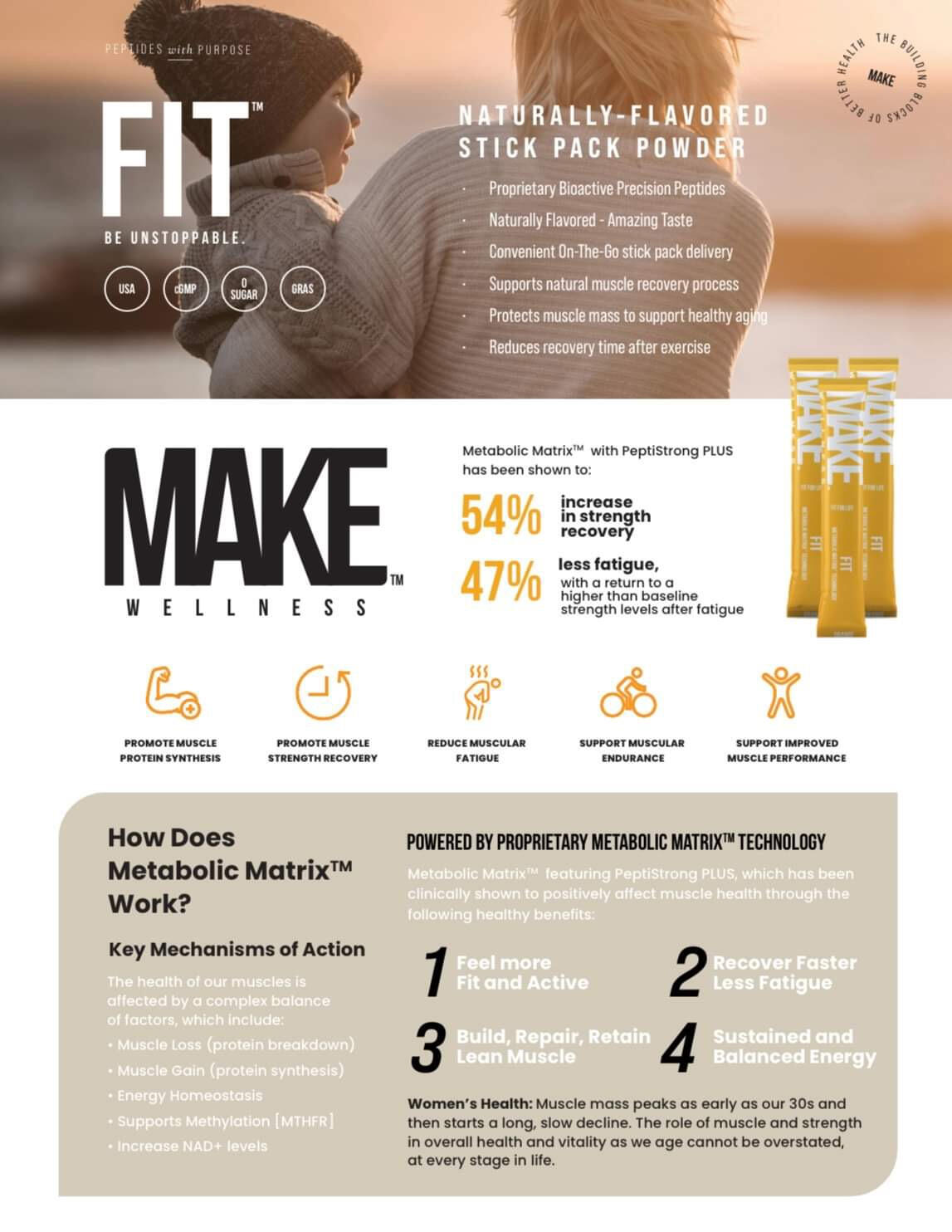 FIT.... is for anyone trying to get back into shape or stay strong, without feeling like they have to live in the gym. It’s designed to support your muscles and energy, so you can move through your day feeling strong—whether that’s chasing kids, hitting your step goal, or squeezing in a quick workout. It’s like giving your body an extra boost so you feel good in your skin and ready to handle whatever comes your way.