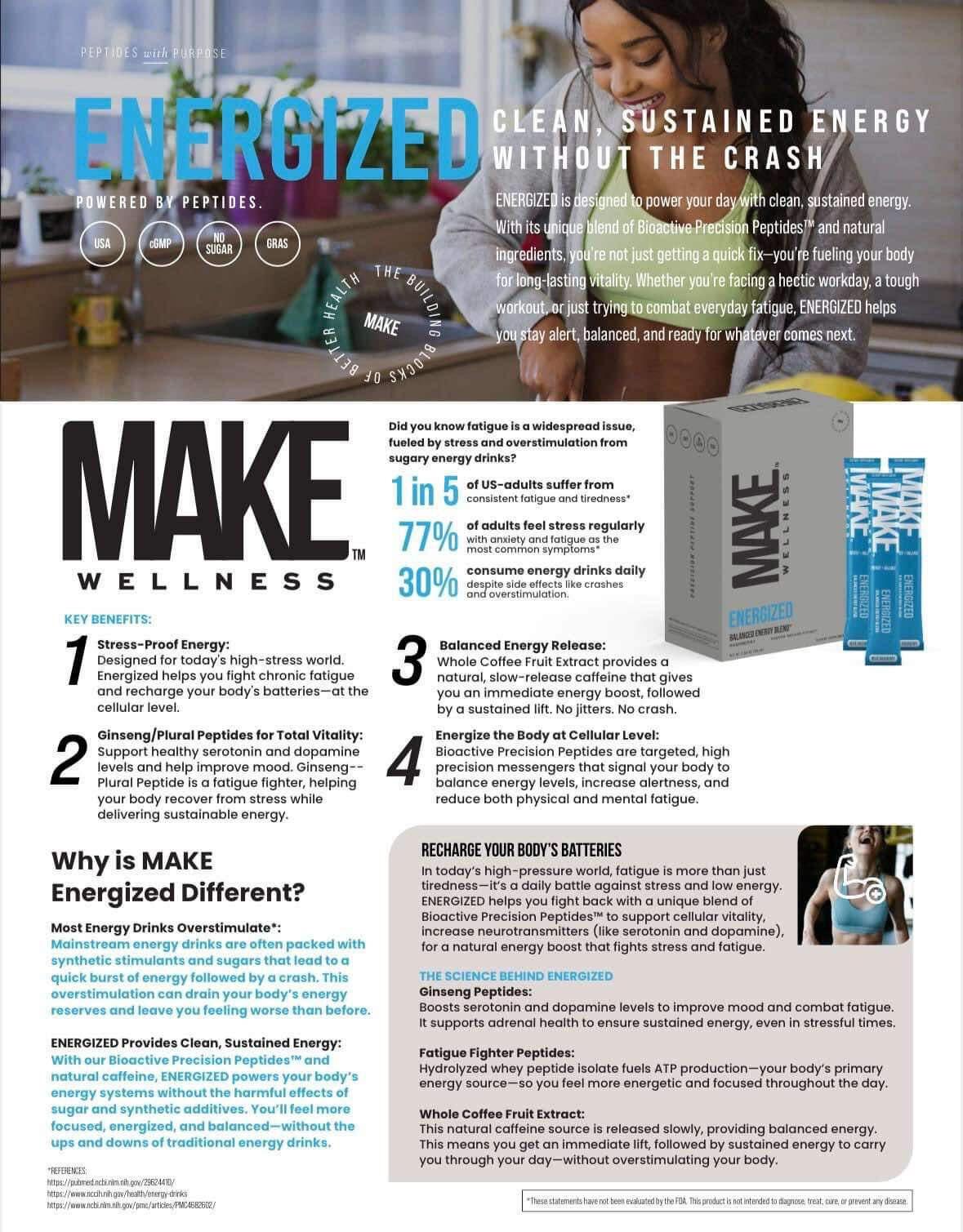 Energized ....is for anyone who feels like they’re running on fumes and needs a pick-me-up without the crash. Whether it’s getting through the afternoon slump, tackling workouts, or keeping up with the kids, ENERGIZED helps you feel awake and ready to go. It gives you steady energy, so you can power through your day and still have some fuel left in the tank