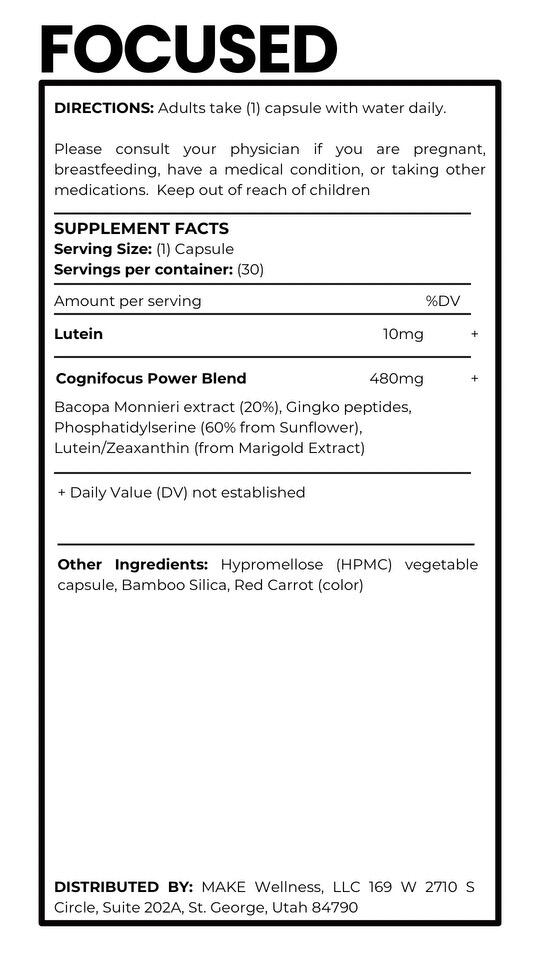 Focused.... is for anyone who feels scatterbrained or struggles to stay on task. Whether you’re juggling work, kids, or just trying to get through your to-do list, FOCUSED helps clear the mental fog and keeps you dialed in. It’s like giving your brain a little boost, so you can stay sharp and on track without feeling overwhelmed.
