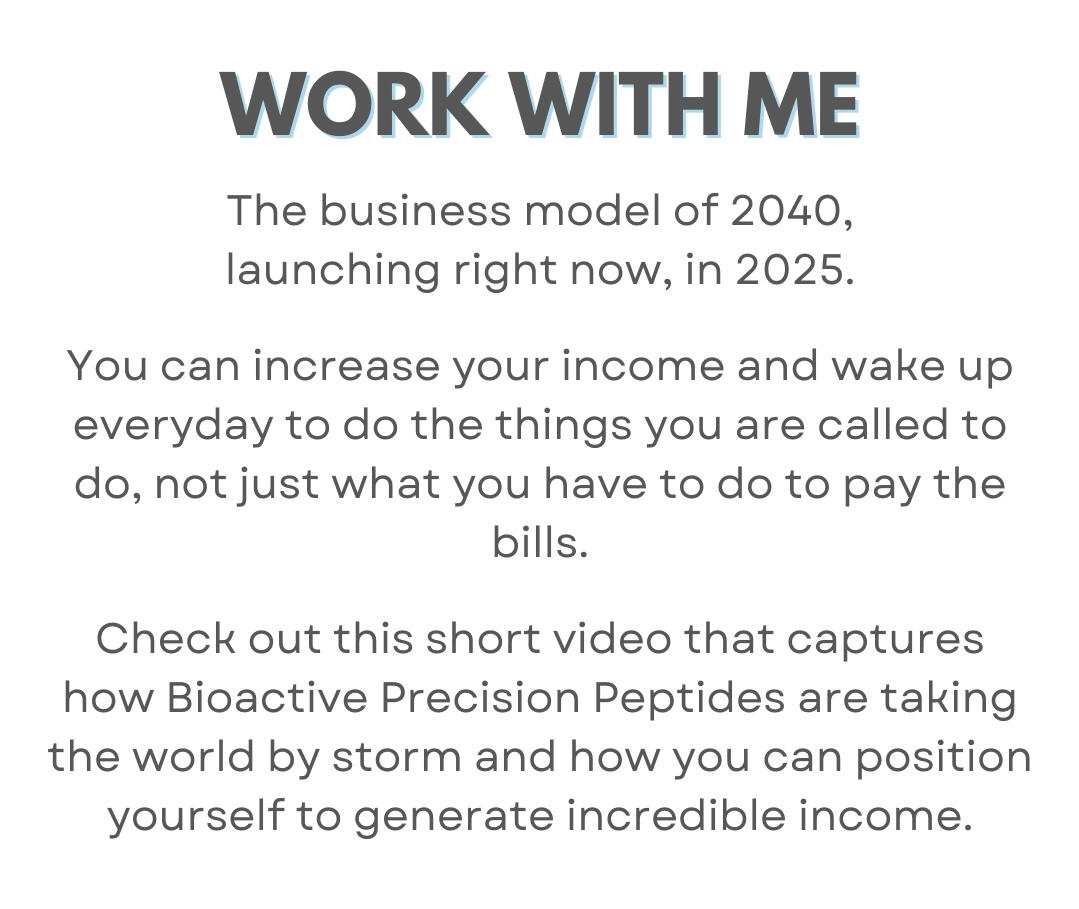 No fees. No monthly minimums. No pressure. Just a powerful way to share products that truly change lives—and earn 10–40% commissions on every sale, paid out daily.💡 These aren’t just any products. This is a new category in health—nature-derived peptides that are helping people finally feel like themselves again. Backed by real science and paired with a generous, easy-to-understand affiliate model, this is a first-of-its-kind opportunity.Plus, you won’t be doing it alone. You’ll join a heart-led community of leaders, encouragers, and wellness advocates who believe in personal growth and purpose-driven living. 🌱