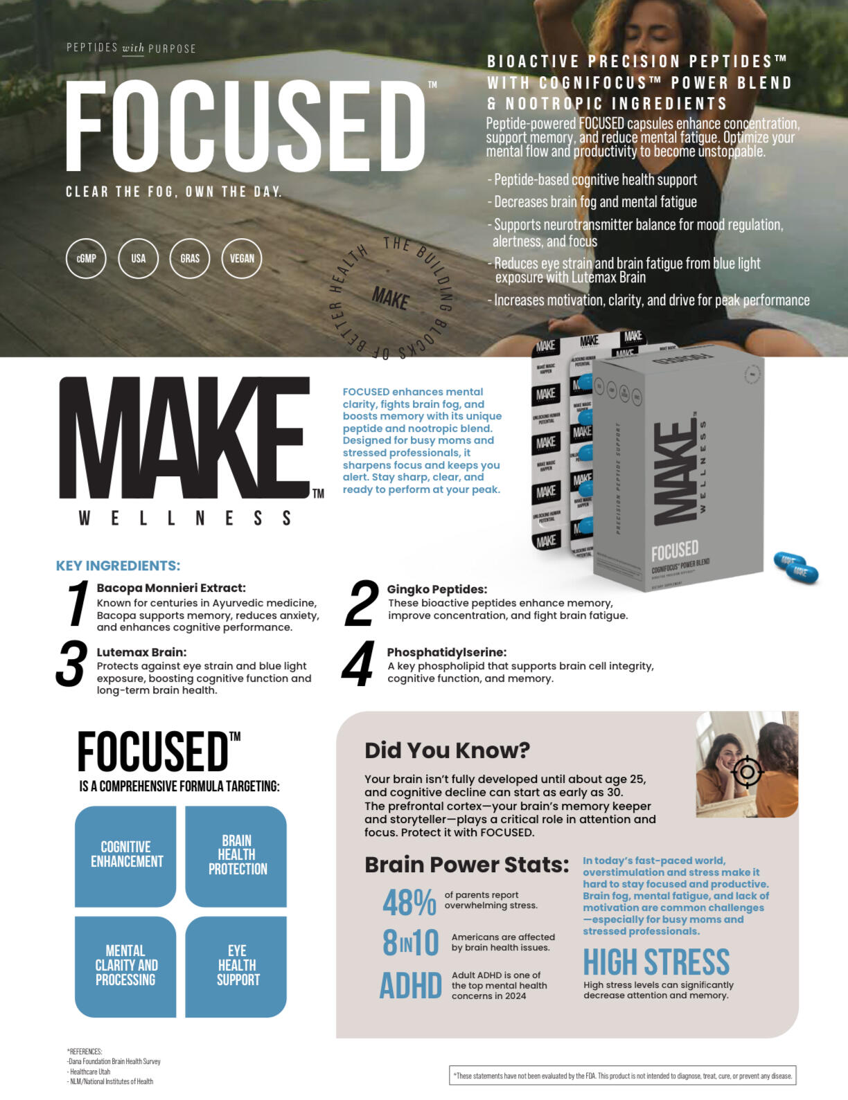 Focused.... is for anyone who feels scatterbrained or struggles to stay on task. Whether you’re juggling work, kids, or just trying to get through your to-do list, FOCUSED helps clear the mental fog and keeps you dialed in. It’s like giving your brain a little boost, so you can stay sharp and on track without feeling overwhelmed.
