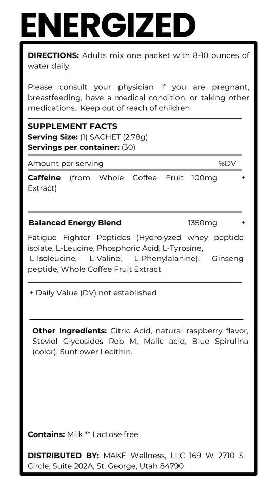Energized ....is for anyone who feels like they’re running on fumes and needs a pick-me-up without the crash. Whether it’s getting through the afternoon slump, tackling workouts, or keeping up with the kids, ENERGIZED helps you feel awake and ready to go. It gives you steady energy, so you can power through your day and still have some fuel left in the tank